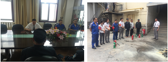 10:30時安全員和義務(wù)消防隊員們開始進行現(xiàn)場滅火演練,通過演習,大家掌握了滅火器和消防栓的使用方法。