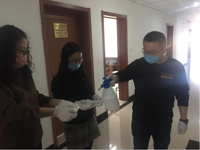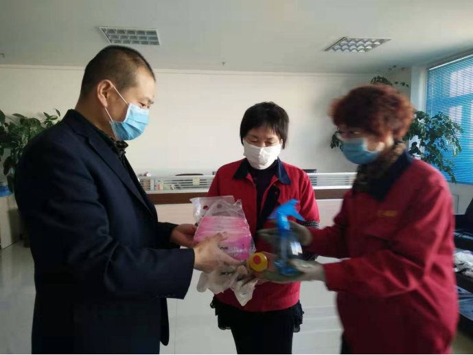 守護(hù)職工筑牢"安全防線":物產(chǎn)配送公司黨委通過配發(fā)酒精40公斤、84消毒液6瓶、消毒濕巾等防控器具,及時組織黨員指導(dǎo)職工進(jìn)行防控工作,重點(diǎn)對宿舍、辦公室、值班室、洗手間門把手、辦公桌椅等進(jìn)行噴灑消毒。