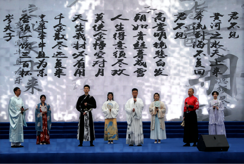 青物書院為搞好此次活動,確保節(jié)目精益求精,組織集團(tuán)系統(tǒng)職工高凱、郭宇、阿柏林、任蕊、王思涵等8名員工排練了富有特色的詩樂鳴響《將進(jìn)酒》。在演出現(xiàn)場,悠揚(yáng)婉轉(zhuǎn)的古箏配上鏗鏘有力的誦讀,將詩仙李白的傳統(tǒng)經(jīng)典賦予了新的形式,煥發(fā)出新的光彩,將活動現(xiàn)場推向了高潮,現(xiàn)場掌聲雷動,展現(xiàn)出了青海物產(chǎn)集團(tuán)職工奮發(fā)向上的精神風(fēng)貌,塑造了青海物產(chǎn)書香企業(yè)的良好形象。