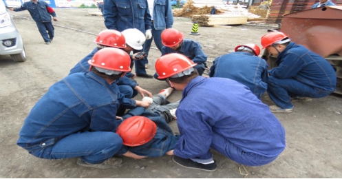演練共分為參加演練人員集結(jié)、現(xiàn)場(chǎng)模擬人員受傷、采取止血包扎處理、現(xiàn)場(chǎng)管理人員發(fā)現(xiàn)事故后立即向指揮組匯報(bào)情況、指揮組接到通知后立即組織現(xiàn)場(chǎng)救援、各應(yīng)急小組迅速趕往事故地點(diǎn)、應(yīng)急救護(hù)組對(duì)傷者進(jìn)行簡(jiǎn)單救護(hù)后將傷者送往醫(yī)院、事故處理組對(duì)事故進(jìn)行初步調(diào)查等過程。