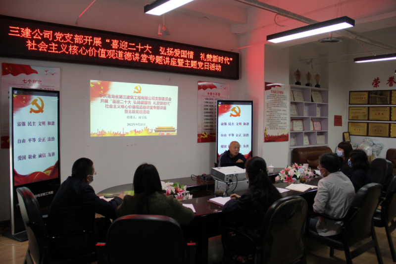 (省三建公司 訊 韓毓、王文杰/文 韓毓/攝 )2022年是黨的二十大召開之年,是落實省第十四次黨代會精神開局之年。為持續(xù)鞏固拓展黨史學(xué)習(xí)教育成果,加強(qiáng)精神文明建設(shè),深化民族團(tuán)結(jié)進(jìn)步宣傳教育和感恩教育,講好各族民族守望相助、團(tuán)結(jié)奮進(jìn)的國企故事,積極培育和踐行社會主義核心價值觀,9月21日,公司黨支部開展“喜迎二十大 弘揚(yáng)愛國情 禮贊新時代”社會主義核心價值觀道德講堂專題講座暨主題黨日活動。