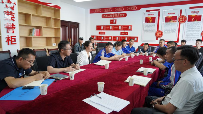 參觀完后,各位黨員與汽車系師生開展了互動式交流研討。李玉宏、楊植等優(yōu)秀畢業(yè)生為在校學(xué)生們講述了個人的成長經(jīng)歷,以及如何面對職場中遇到的各種困惑和難題,告訴大家只有自身具備過硬的技能、本領(lǐng),才能在未來抓住機(jī)遇,迎接挑戰(zhàn)。“物產(chǎn)工匠”石學(xué)林為大家講述了自己如何從一名普通修理工通過不斷學(xué)習(xí),刻苦鉆研技術(shù),提升業(yè)務(wù)能力成長為一名優(yōu)秀的技術(shù)骨干及優(yōu)秀“共產(chǎn)黨員”的事跡分享。在輕松的研學(xué)交流中,雙方互問互答,面對當(dāng)前汽車行業(yè)形勢,堅定自身就業(yè)信心,做好職業(yè)人生規(guī)劃,勇于嘗試探索,秉持積極的心態(tài),努力實(shí)現(xiàn)個人理想,書寫屬于自己的青春華章。