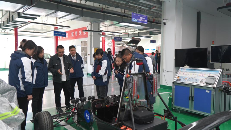 在參觀比亞迪E5純電動(dòng)車實(shí)訓(xùn)區(qū)時(shí),大家看到了學(xué)院2023年全國(guó)行業(yè)職業(yè)技能大賽二等獎(jiǎng)作品的技術(shù)“含金量”,饒有興趣地了解了繪圖-備材-制作-成型的具體過程,以及對(duì)轉(zhuǎn)動(dòng)、逃生、行駛、焊接、拆裝、車架與車身的測(cè)試。高校的科研成果凝聚了工匠精神傳承和“惟專惟精、匠人匠心”的人才培養(yǎng)理念,在提升職業(yè)道德修養(yǎng)、增強(qiáng)專業(yè)技術(shù)能力、發(fā)展創(chuàng)新創(chuàng)業(yè)能力等方面全面融入了工匠精神培育。在場(chǎng)的黨員仔細(xì)觀摩,向創(chuàng)作單位投以敬佩的眼光。雙方在“工匠精神是培養(yǎng)高素質(zhì)技術(shù)技能人才的目標(biāo)導(dǎo)向,是推動(dòng)產(chǎn)教融合、校企合作的重要實(shí)踐途徑”達(dá)成共識(shí)。
