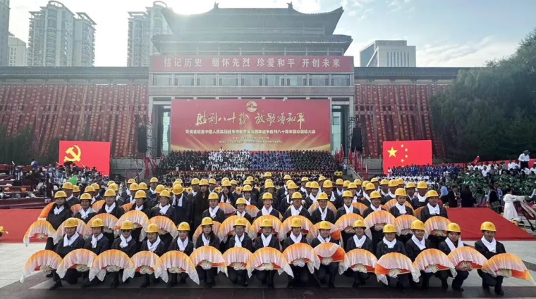 9月5日上午,勝利八十載 放歌頌和平——青海省紀(jì)念中國人民抗日戰(zhàn)爭暨世界反法西斯戰(zhàn)爭勝利八十周年群眾歌詠大會(huì)在新寧廣場(chǎng)隆重舉行。由省物產(chǎn)集團(tuán)80名職工組成的合唱方陣代表全省企業(yè)參加演出活動(dòng)。集團(tuán)黨委書記、董事長劉玲,集團(tuán)黨委專職副書記、工會(huì)主席魏廷強(qiáng)參加紀(jì)念大會(huì)。
