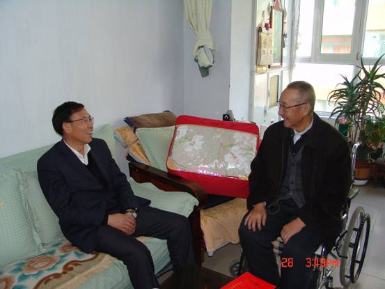 2013年1月28日,春節(jié)來(lái)臨之際,省委組織部王志明副部長(zhǎng)在省國(guó)資委黨委副書記毛占彪、物產(chǎn)集團(tuán)領(lǐng)導(dǎo)白家林、王仁芬的陪同下,走訪慰問了集團(tuán)系統(tǒng)生活困難老黨員肖振東。王志明副部長(zhǎng)親切地詢問肖振東的身體狀況、生活和家庭情況,發(fā)放了慰問金和慰問品,并希望他保重身體,愉快安度晚年。老黨員肖振東激動(dòng)地表示感謝黨組織的關(guān)懷,感謝上級(jí)領(lǐng)導(dǎo)的關(guān)心!